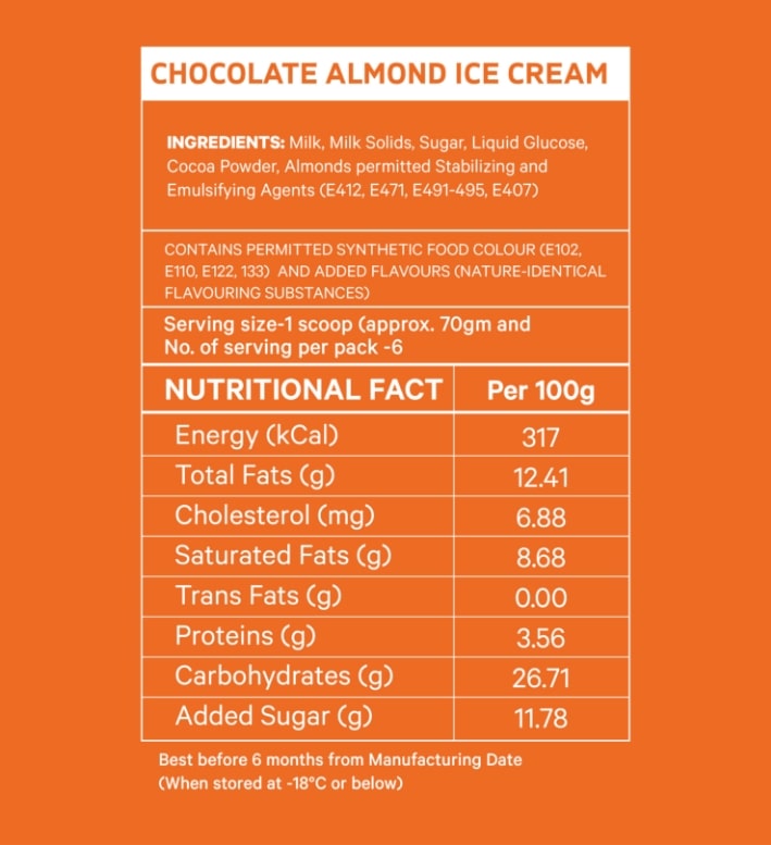 Milk, Milk Solids, Sugar, Liquid Glucose, Cocoa Powder, Almonds Stabilizers & Emulsifiers.