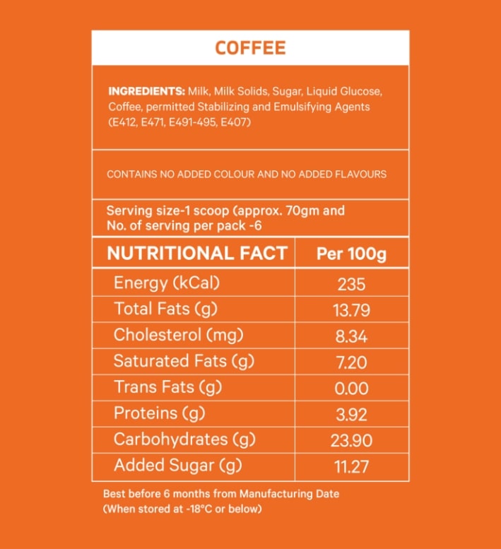 Milk, Milk Solids, Sugar, Liquid Glucose, Coffee, Stabilizers & Emulsifiers.